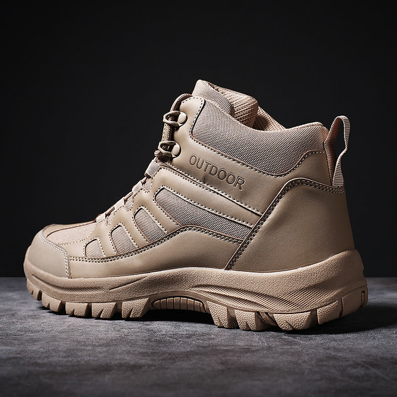 Slip, oil, and abrasion-resistant rubber out-sole is a flexible response to various outdoor terrain.