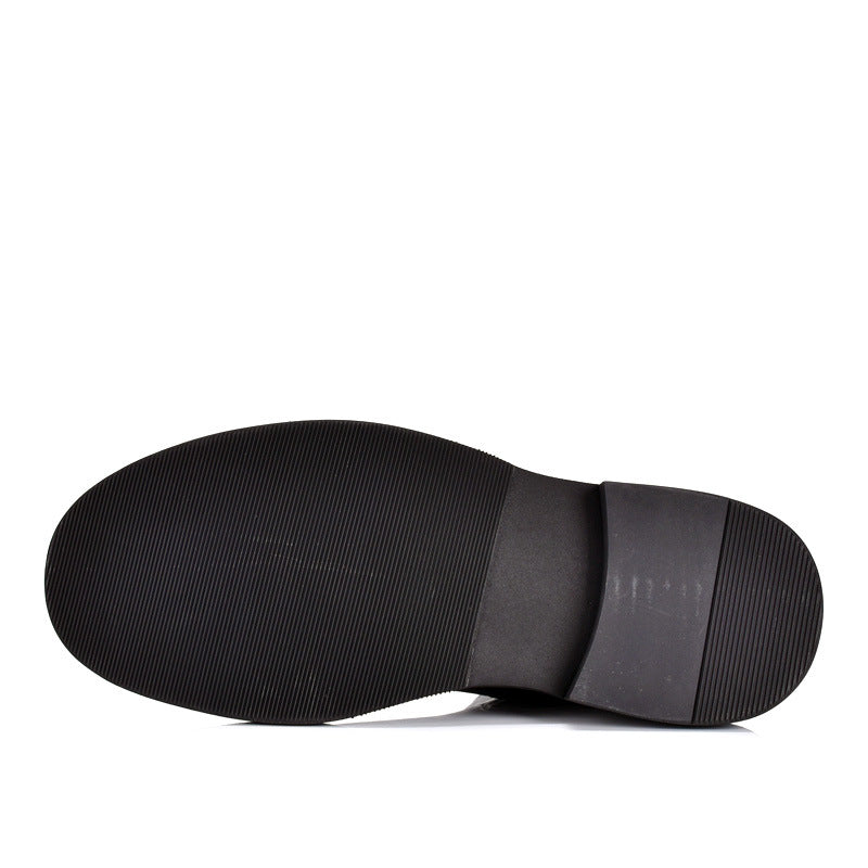Step into timeless sophistication with the TELUOLU Men's Chelsea Boots. Meticulously crafted from premium full-grain leather, these boots blend classic British design with contemporary comfort features. The elastic side panels ensure easy slip-on wear, while the sturdy 3-5cm heel provides a subtle lift and confident stance. With a supple pigskin lining and a cushioned leather insole, they offer all-day comfort, making them the perfect footwear for autumn and winter, whether you're at the office or out on the town.