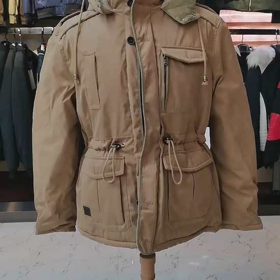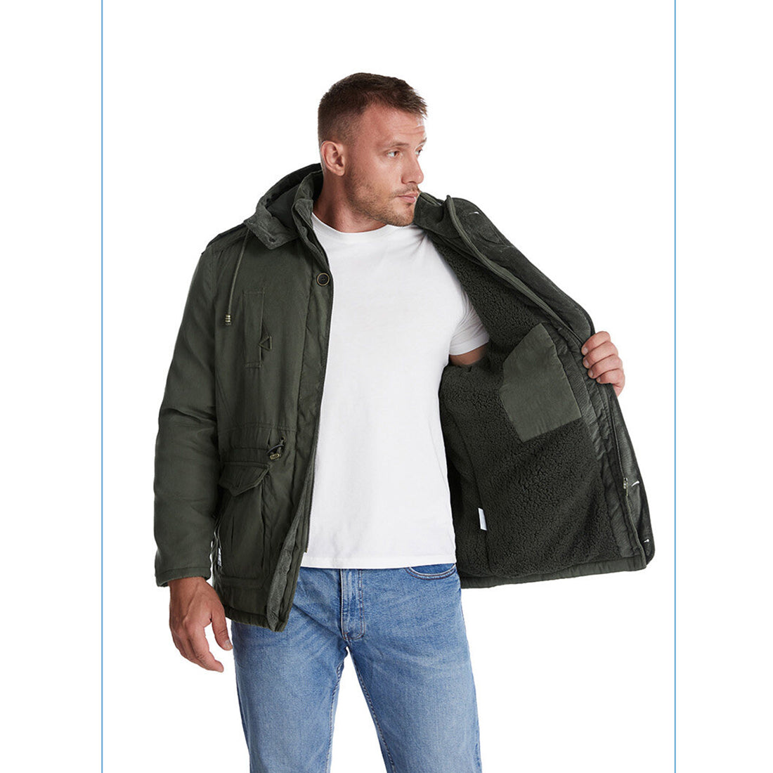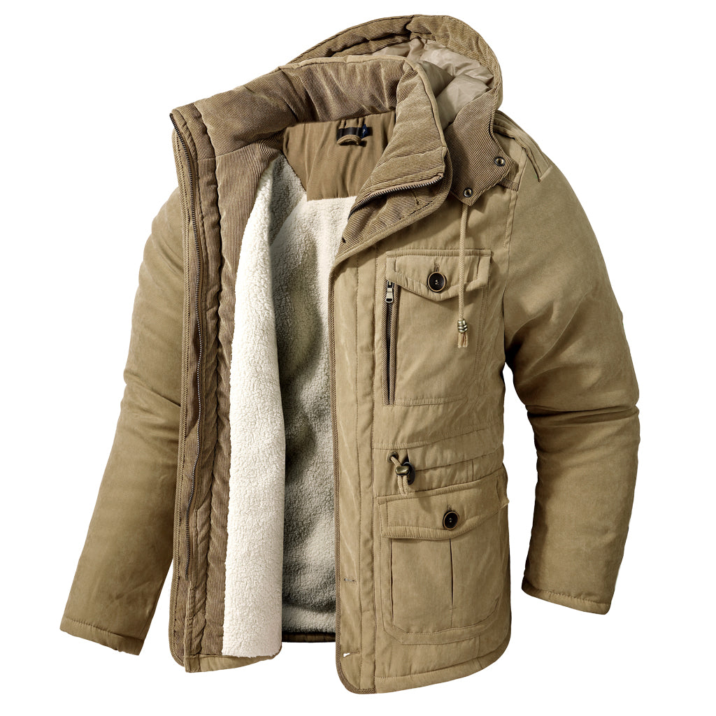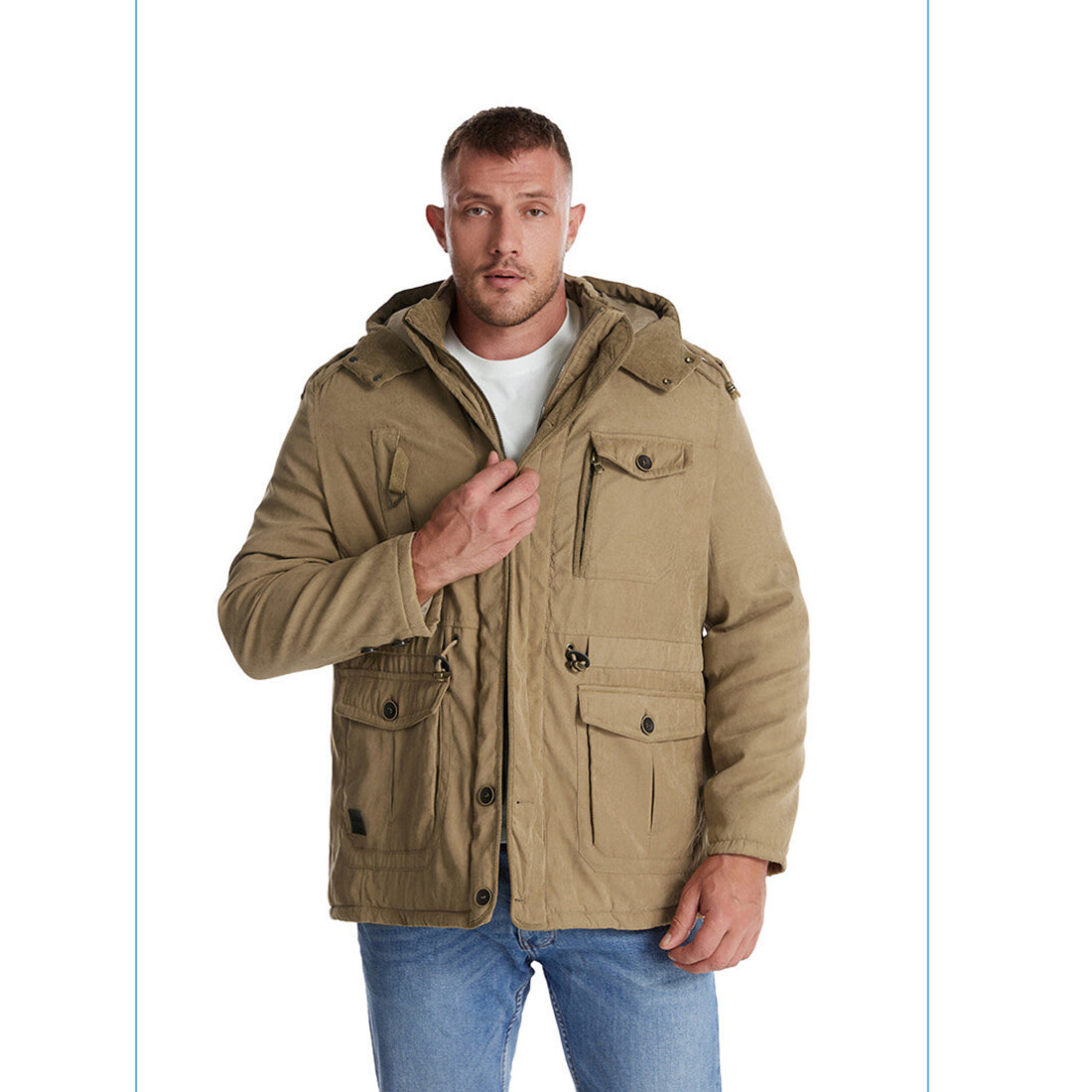 Thick Hooded Lamb Wool Men's Premium Multipockets Jacket | 3256