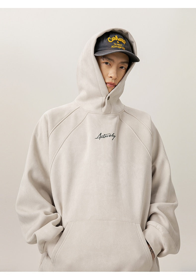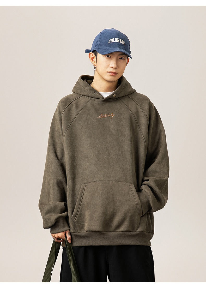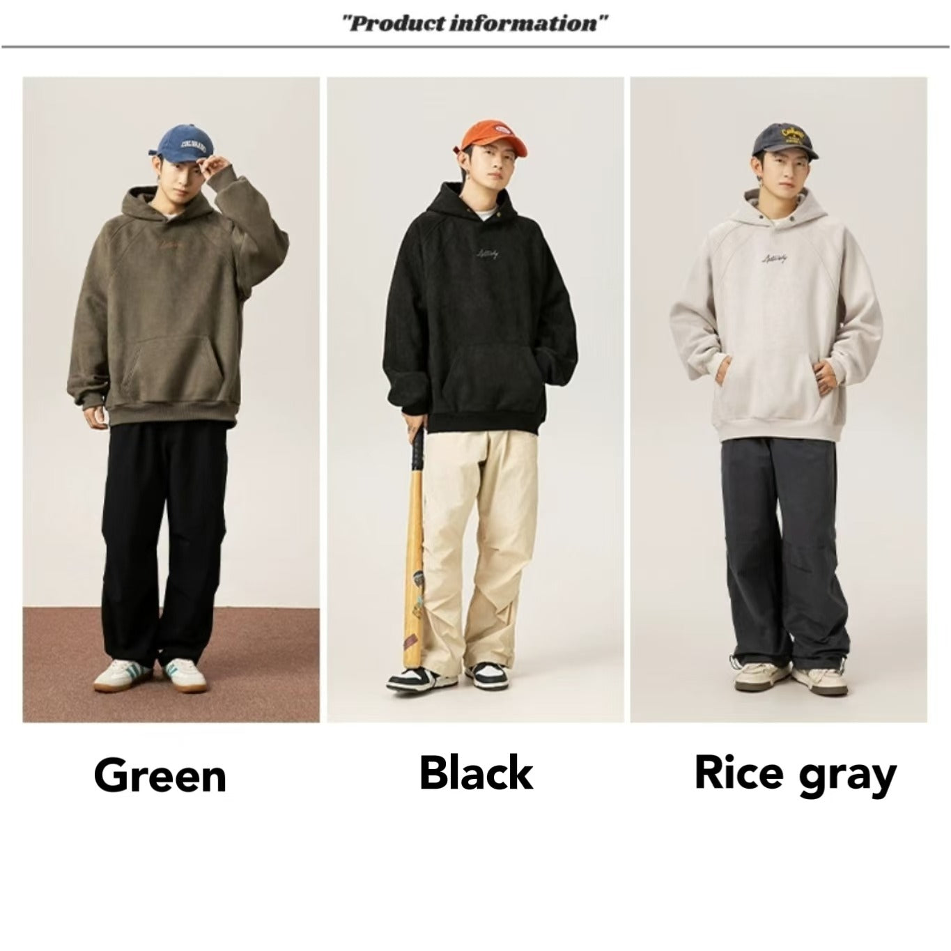 Unisex Heavy Suede Hooded Sweatshirt Retro American Style for Autumn & Winter Loose Fit Hoodie | L3848