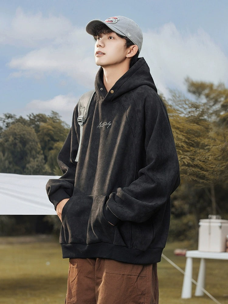 Expertly crafted with a heavy suede material, this unisex hooded sweatshirt boasts a retro American style that is perfect for autumn and winter. Designed for a loose and comfortable fit, it offers both warmth and style.