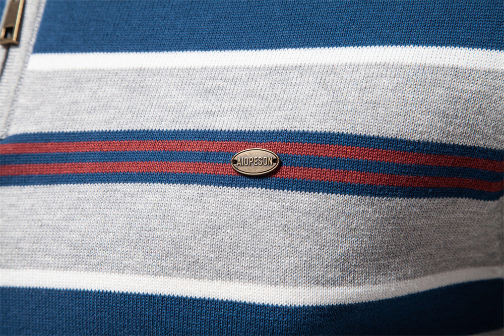Winter Mock Neck Cotton Pullover Knit Business Strip Ribbed Turtleneck Sweaters for Men | SW155