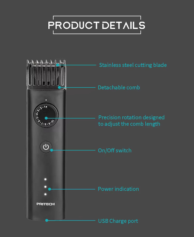 Men's Rechargeable Hair Trimmer Precision Grooming Tool for Hair Beard & Mustache | PR-2388