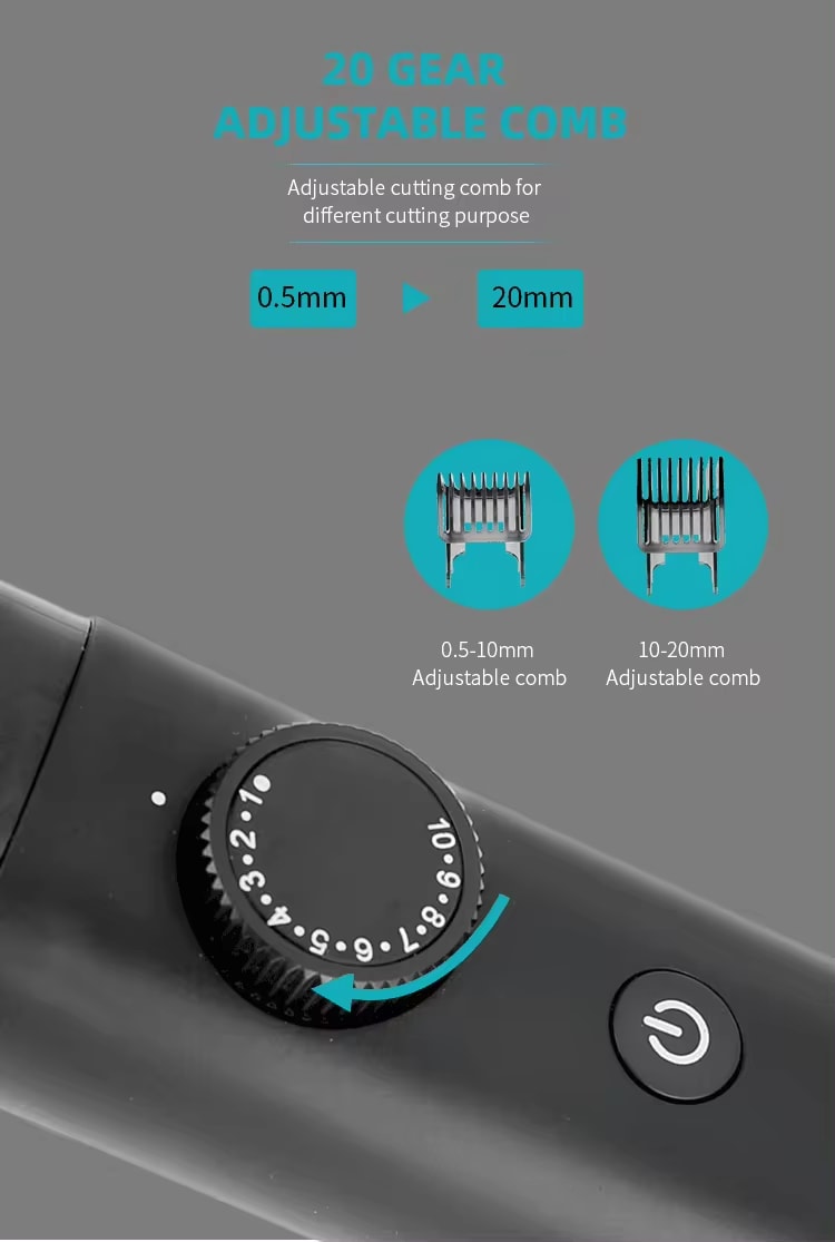 | Accessories | USB cable charging, cleaning brush, lubrication oil, 2 different size combs for different cutting length |